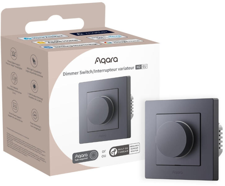 Aqara Dimmer Switch H2 EU - fényerőszabályzós villanykapcsoló, szürke, Bluetooth, Zigbee, Thread (KD-R01D-G) (KD-R01E)